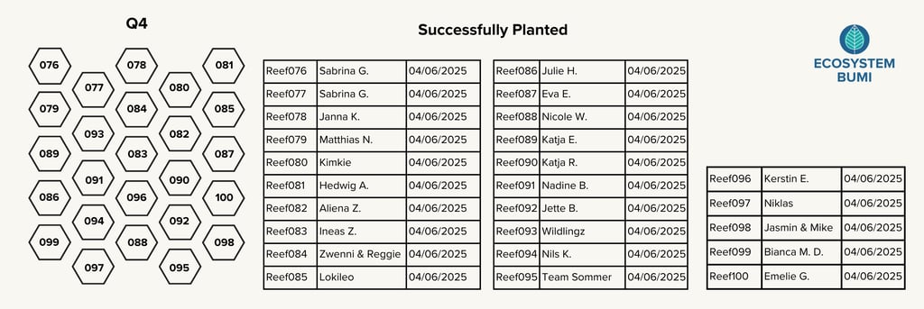Through this collaboration, we aim to restore the marine ecosystem by planting 100 reef stars (1,800 corals) within a year and creating a nursery site to nurture the growth of young corals.