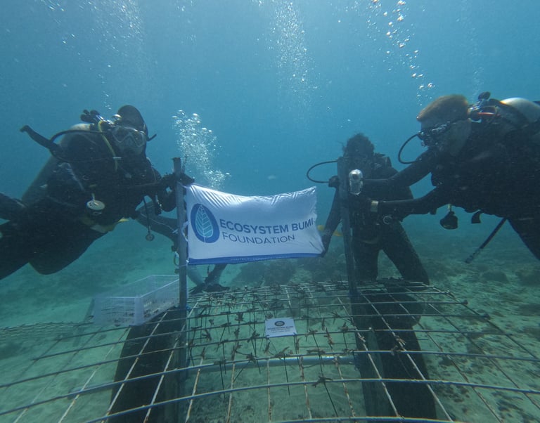 Ecosystem Bumi, an organization dedicated to protecting ecosystems, is expanding its efforts to safeguard marine ecosystems. In collaboration with Livingseas Foundation, we are launching a coral restoration program in Padang Bai, Bali.