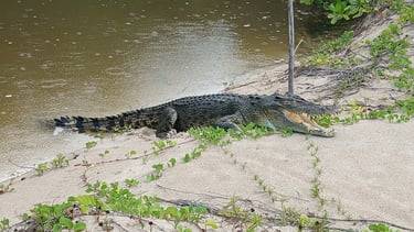 On land, monitor lizards patrol the forest floor, while various snake species maintain ecological balance. Along the coastline, saltwater crocodiles navigate the estuaries, and beneath the waves, vibrant coral reefs and lush seagrass beds are filled with marine life, from colorful fish and reef sharks to even dugongs.
