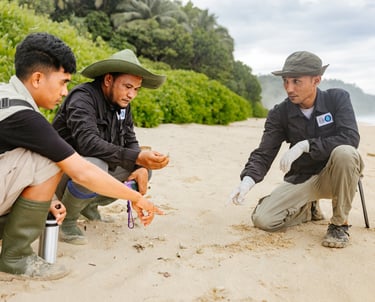 Since 2024, Ecosystem Bumi has partnered with Ecosystem Impact and the local government to protect the highly threatened Leatherback Sea Turtles (Dermochelys coriacea) and Green Sea Turtles (Chelonia mydas) on Bangkaru Island, part of the Sumatra Islands in Indonesia.
